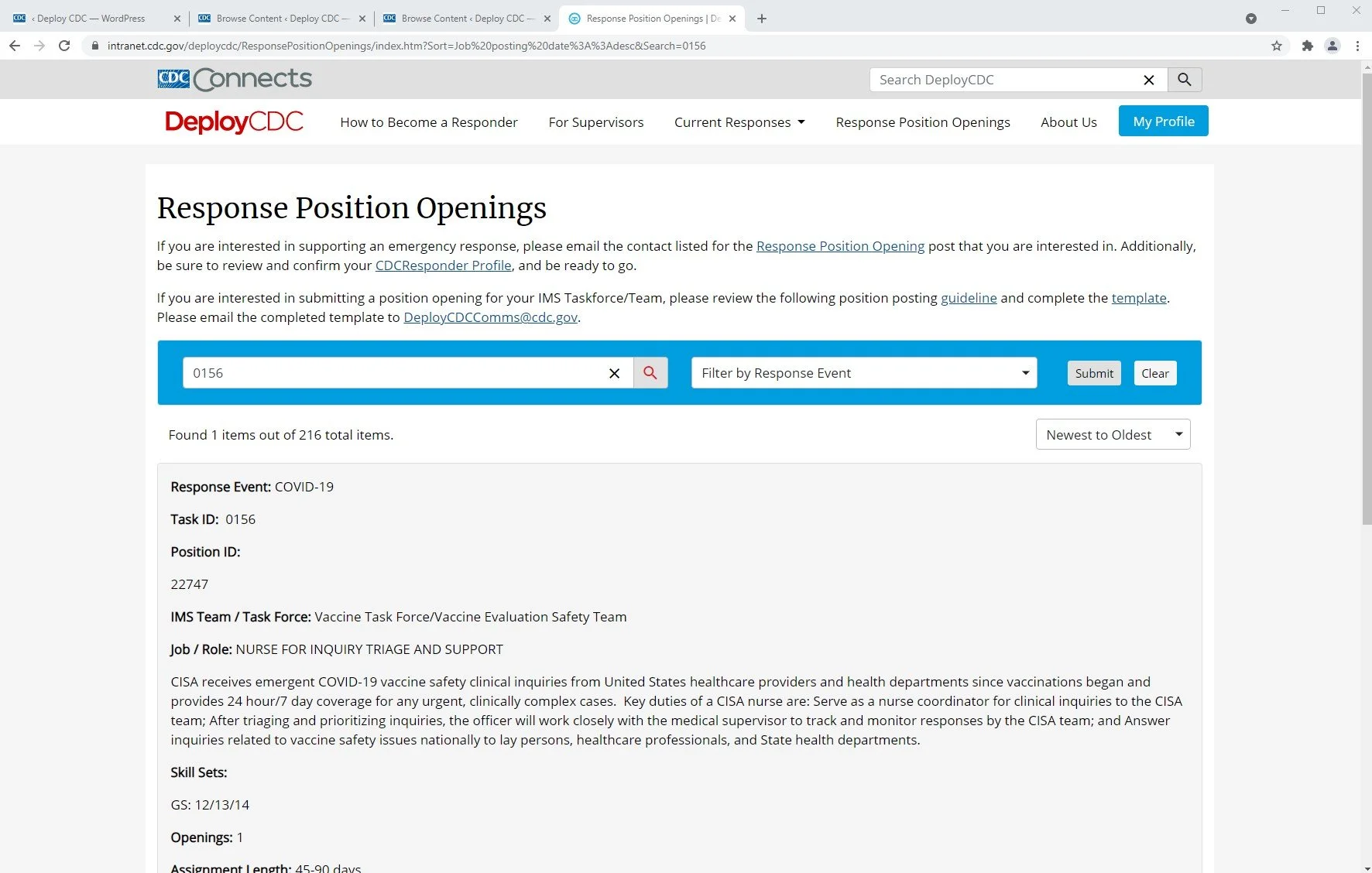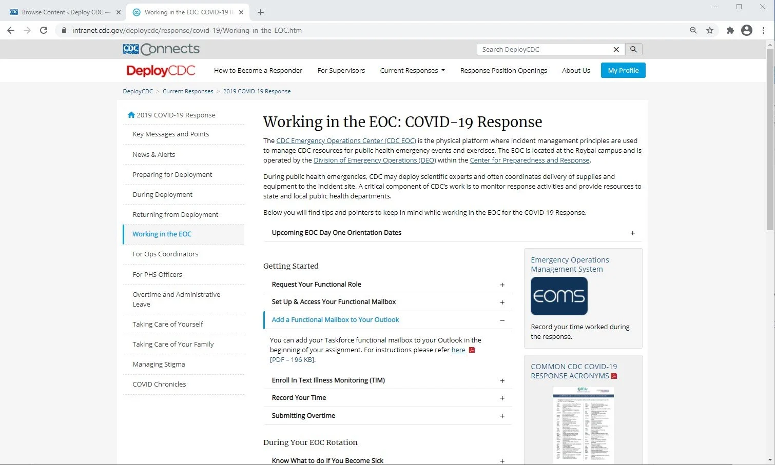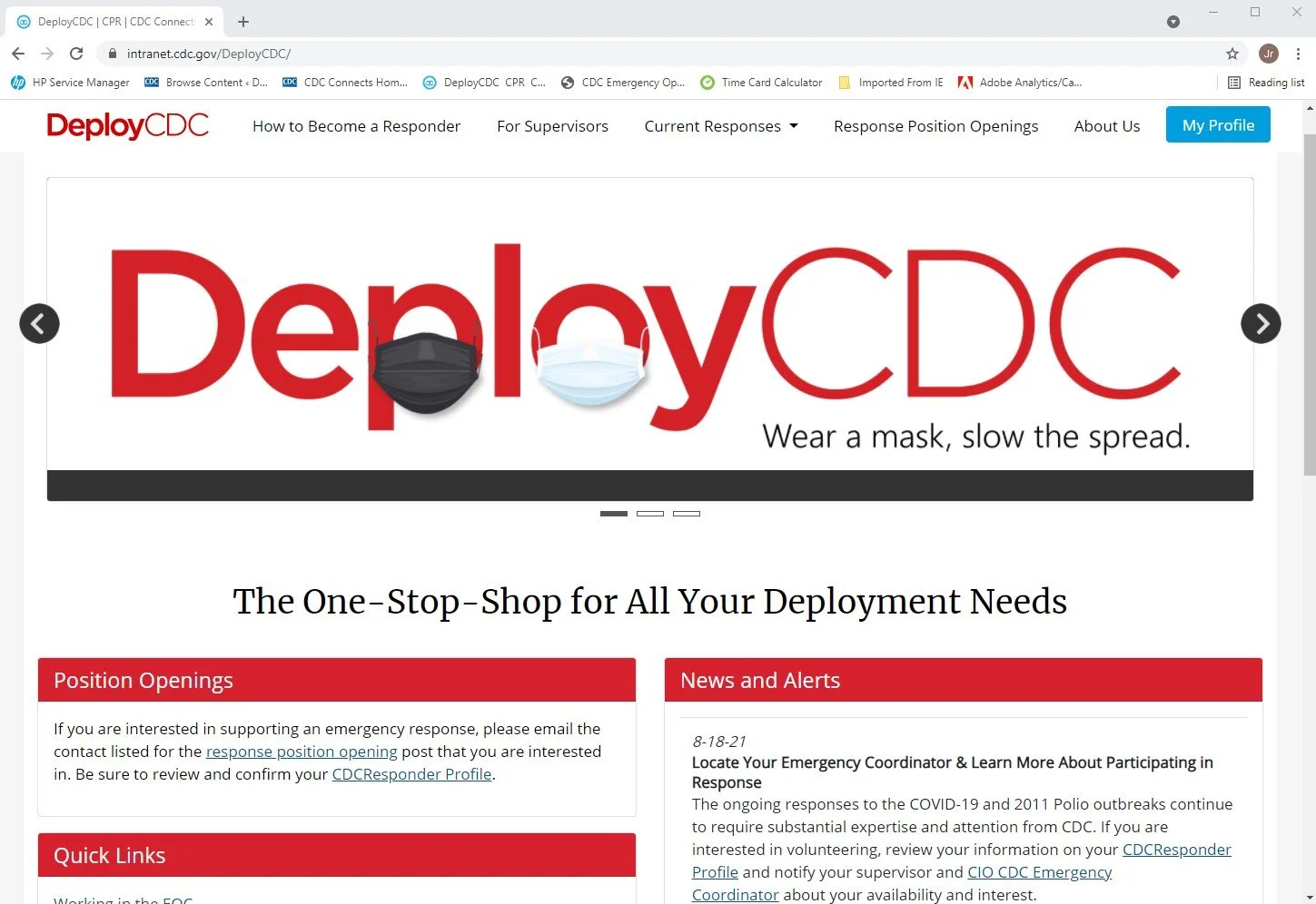 An internal web-based platform used by the CDC to support emergency response staffing and deployment operations.
